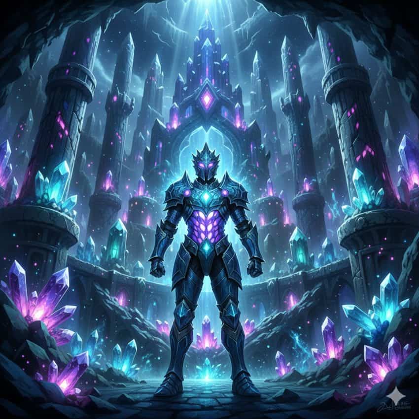 Latar belakang menunjukkan benteng kristal dengan aura cahaya yang terus bergerak. Setiap kemenangan kecil memicu percikan partikel permata, menciptakan sensasi bahwa energi kerajaan terus mengalir bersama putaran pemain.